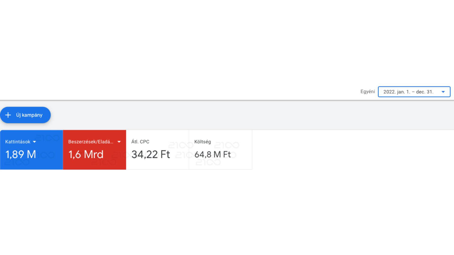 64.8 millió Ft hirdetési költségből 1.6+ milliárd forgalom generálása. 25x megtérülés tavaly.